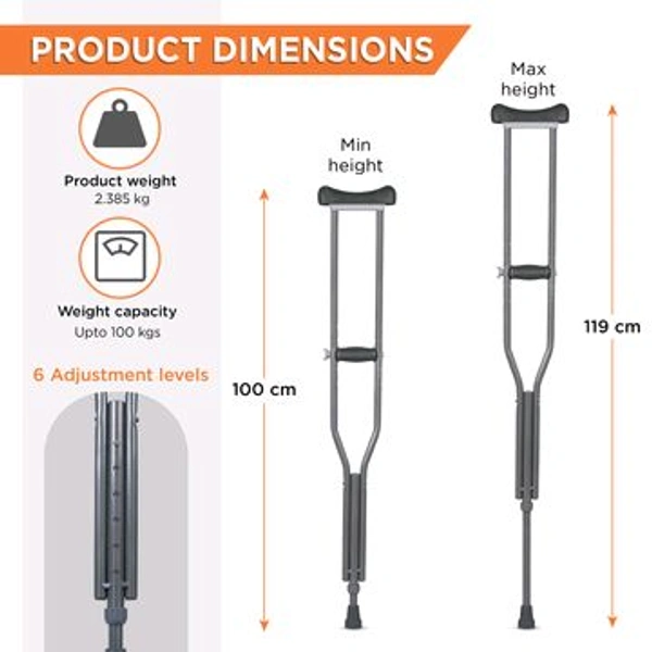 Astra Under Arm Crutches | Adjustable Elbow Support & Height | Light Weight | PVC grip Handle