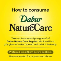 Dabur Nature Care Isabgol is a powdered Pysillium-based natural laxative for relief from constipation. Nature Care Regular is sweeter compared to otherwise tasteless Isabgol. It is natural and safe, rich in natural fibre and maintains the overall gut health.
