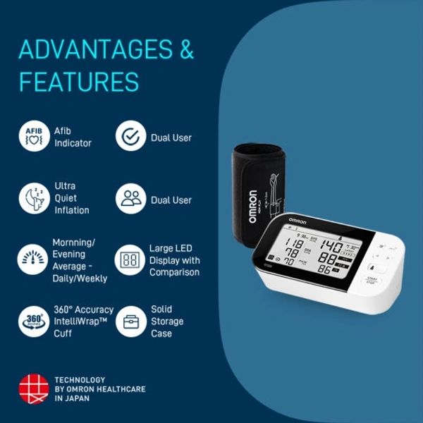 Omron HEM 7361T with bluetooth®, AFIB Indicator, IntelliWrap™ Cuff & Dual User Feature