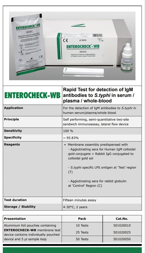 Rapid test for detection of igm and igg antibodies to s.typhi in serum/plasma/whole blood