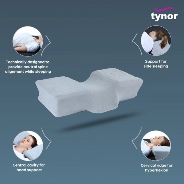 Tynor Anatomic Pillow (Grey) is a scientific and wholesome sleep pillow solution. It is technically designed to provide neutral spine alignment while sleeping on the side and the back. In addition, the anatomical design provides enhanced support to the head, neck and upper back, ensuring a night of sound sleep and no neck muscles fatigue after sleep.