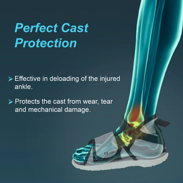 The Tynor Cast Shoe Rocker Sole replaces the functions of the normal shoe when a patient is on foot cast. It prevents excessive wear & tear of the cast and reduces impact on the injured leg. It ensures a high degree of hygiene and improves gait of the patient on foot cast. The design ensures easy wearing and removal.